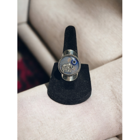 Beautiful light blue elephant round ring made of an alpaca silver material and peruvian natural crystals.